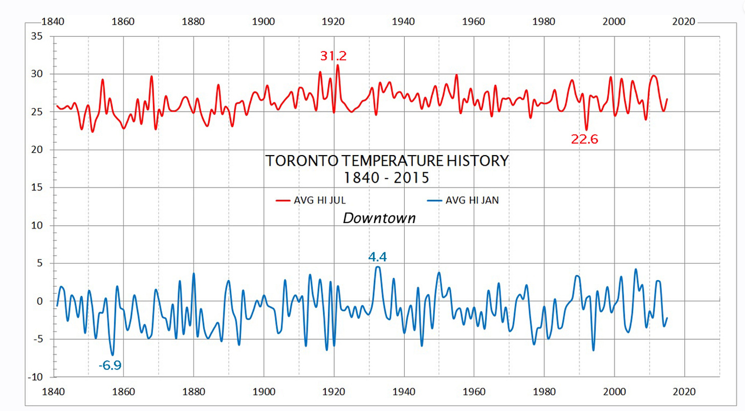No amount of “climate science” can change reality. Toronto temperatures are not rising over the past 180 years. Nor are “global average” temperatures - a nonsensical concept incapable of accurate measurement, making it perfect for those who want to promote alarmist rhetoric.