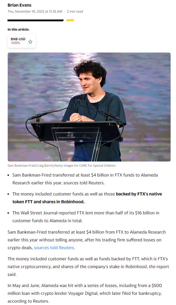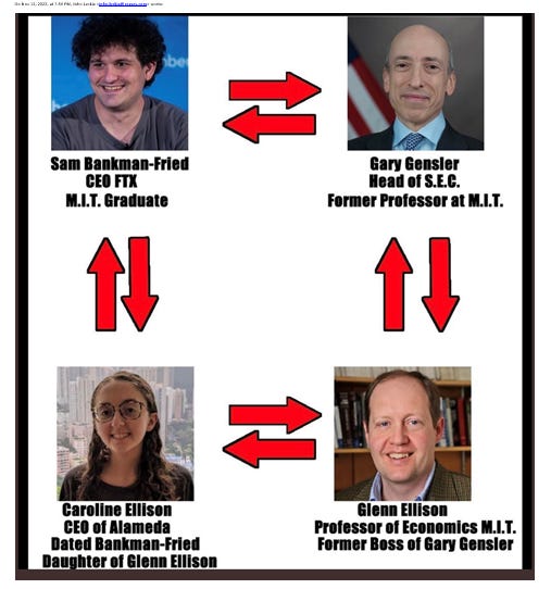 Another interesting linkage is the connection’s through MIT, SBF’s alma mater - 1 SBF graduated from MIT in 2014. The linkage is with SEC commissioner Gary Gensler who was an MIT professor working under Glenn Ellison, another MIT professor, and Ellison’s daughter Caroline who dated SBF and who became the CEO of SBF’s soon-to-be defunct Alameda Research entity. Gensler will now oversee the SEC and DOJ investigation into the collapse of FTX. What goes around, comes round.