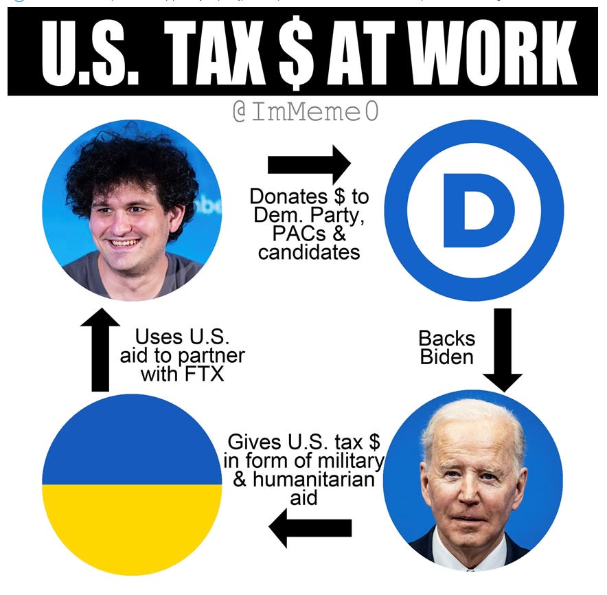 What makes this story more interesting is the ties to the Democratic Party in the United States and TO aid paid to Ukraine by the Biden Administration. This meme circulating on social media points to a troubling linkage, most elements of which cannot be doubted. SBF was a major donor to the Democrats, the Democrats did back Biden’s run for the Oval office, the Biden Administration did provide billions of aid to Ukraine. The nature of Ukraine’s ties to FTX remain a bit murky but there is no doubt there were such ties. At least one theory has Ukraine aid being laundered back to the Democrats, among others. Ukraine seems to have been a favorite nation among the Biden’s if the stories about Hunter Biden and his father have substance.